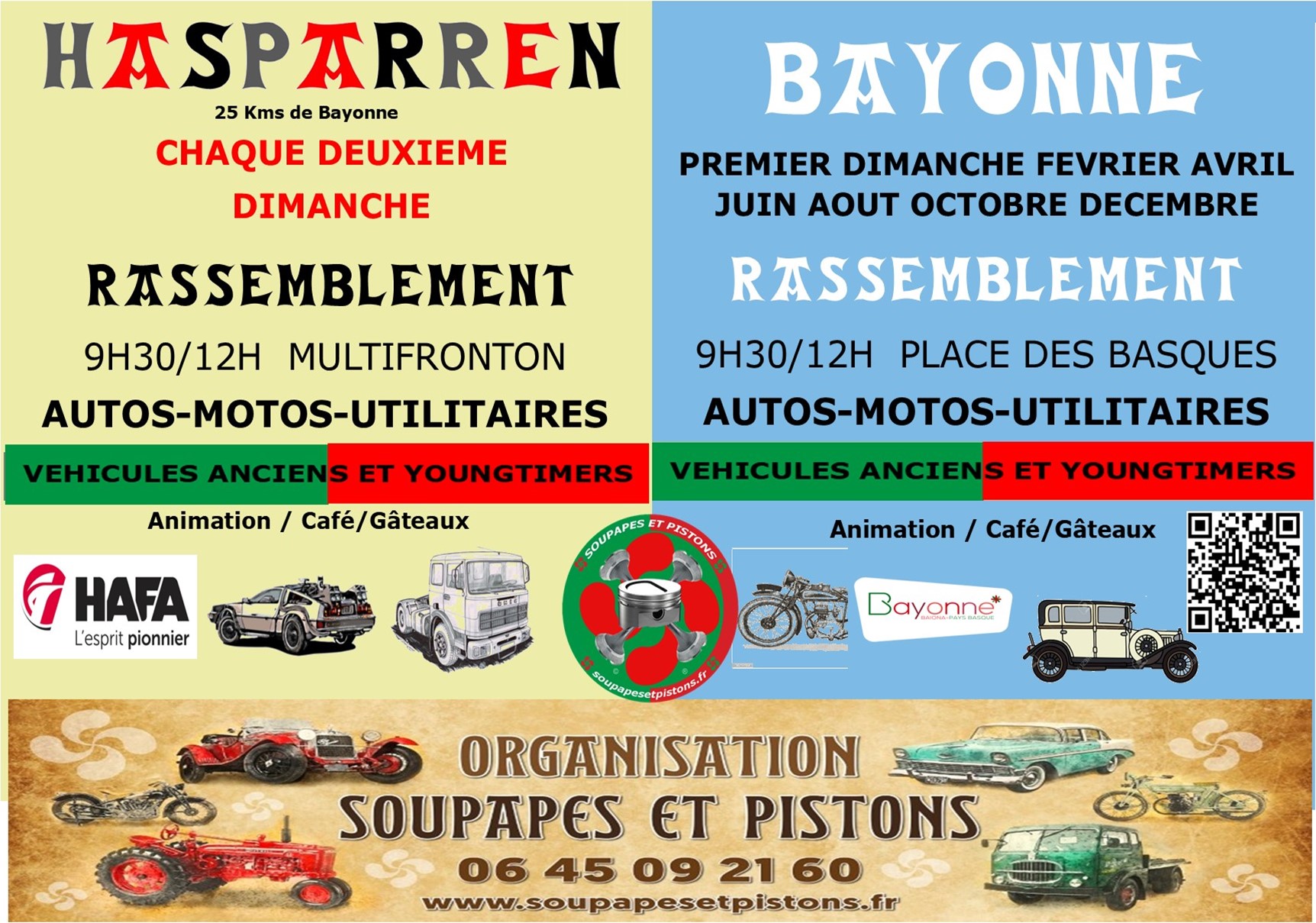 Le club Soupapes et pistons s'adresse aux amateurs et collectionneurs de voitures anciennes et de tous véhicules anciens ainsi que du patrimoine automobile international, vous cherchez un rassemblement de voitures anciennes pour votre week-end dans le Sud-ouest en Pyrénées-Atlantiques Pays Basque ? Ne cherchez plus ! Ici nous ne collectionnons pas vraiment! Nous protégeons et faisons apprécier le patrimoine automobile en le faisant circuler. Viens nous retrouver pour y participer toi même. Le club "Soupapes et Pistons" organise des rassemblements mensuels à Bayonne et Hasparren, des événements CARITATIFS et des balades en voitures de collection et participe à des évenements d'autres clubs de véhicules anciens à travers le Pays Basque, Landes et l'Espagne.